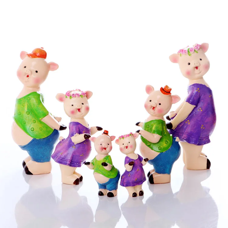 Home decorations living room wine cabinet porch crafts animal piglet ornaments mini cartoon family