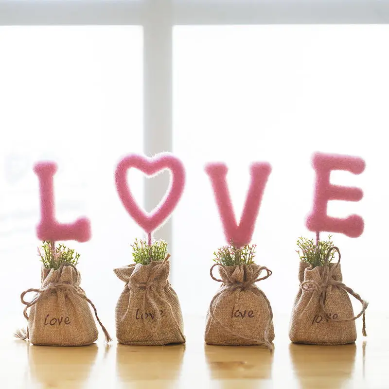 Best Quality 4pc/set Dry flower I Love You ceramic family bedroom lovely adornment home furnishings accessories