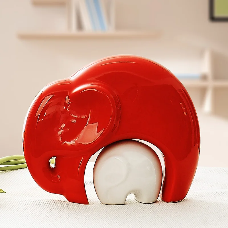 ceramic elephant mother and child family set home decor crafts animal porcelain figurine modern roo