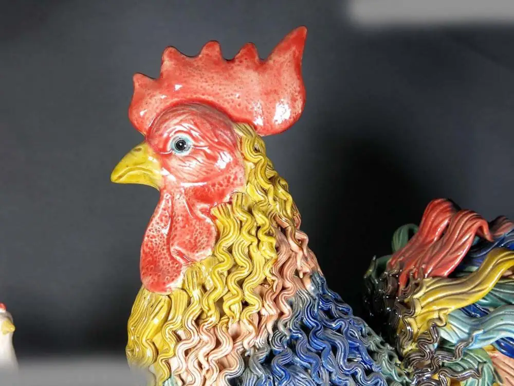 14" China handmade fine koji pottery sculpture Lucky rooster family Statue
