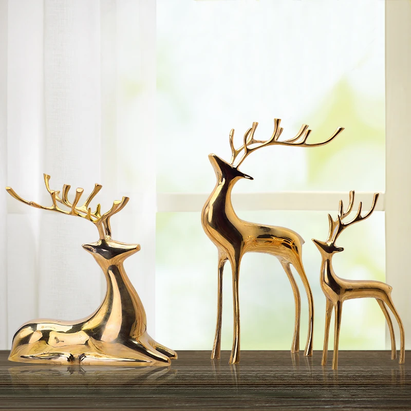 Pure Copper Deer Figurine Porcelain Deer Family Animal Statue Modern Ornaments Wedding Gift Home Ca