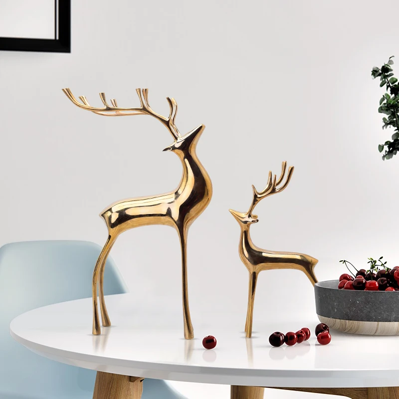 Best Seller Pure Copper Deer Figurine Porcelain Deer Family Animal Statue Modern Ornaments Wedding Gift Home Ca