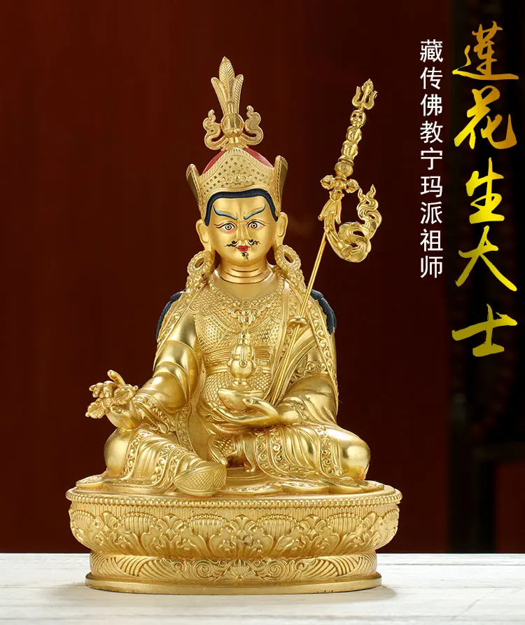 21CM large -High-grade gilding Buddha brass statue HOME family protection Tibet Nepal Padmasambhava