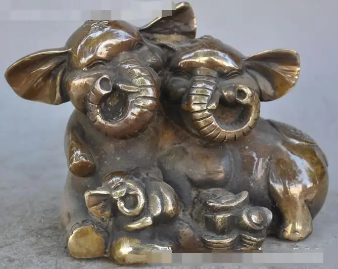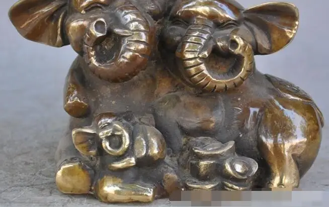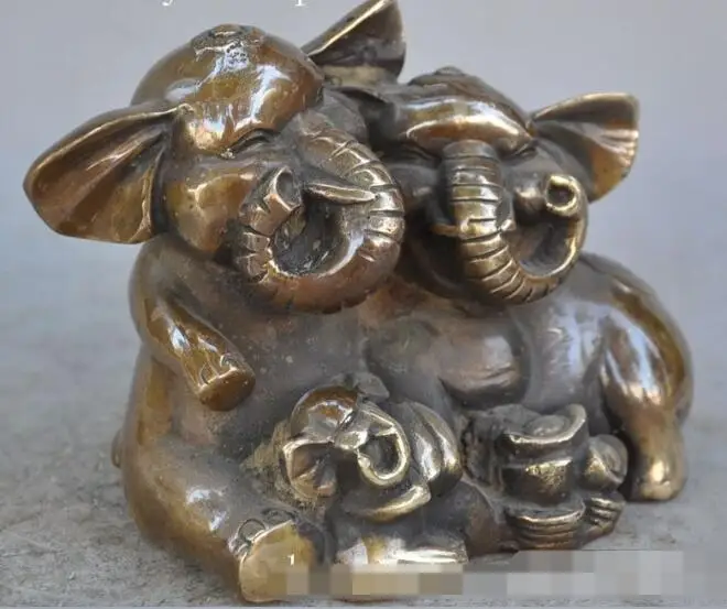 S03932 chinese bronze fengshui animal Elephants Baby wealth yuanbao money family statue (B0413)